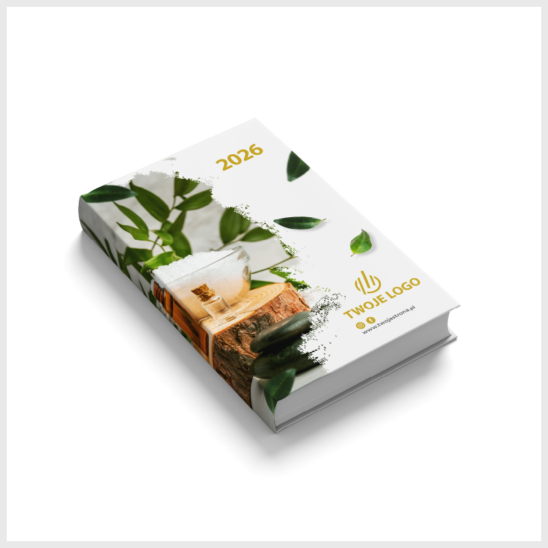 Firmy wybierają soft touch, gdy kalendarz ma pełnić funkcję eleganckiego upominku albo elementu premium brandingu. Idealnie łączy się z hot-stampingiem lub lakierem UV, dając efekt wielowarstwowej, przyciągającej wzrok okładki.